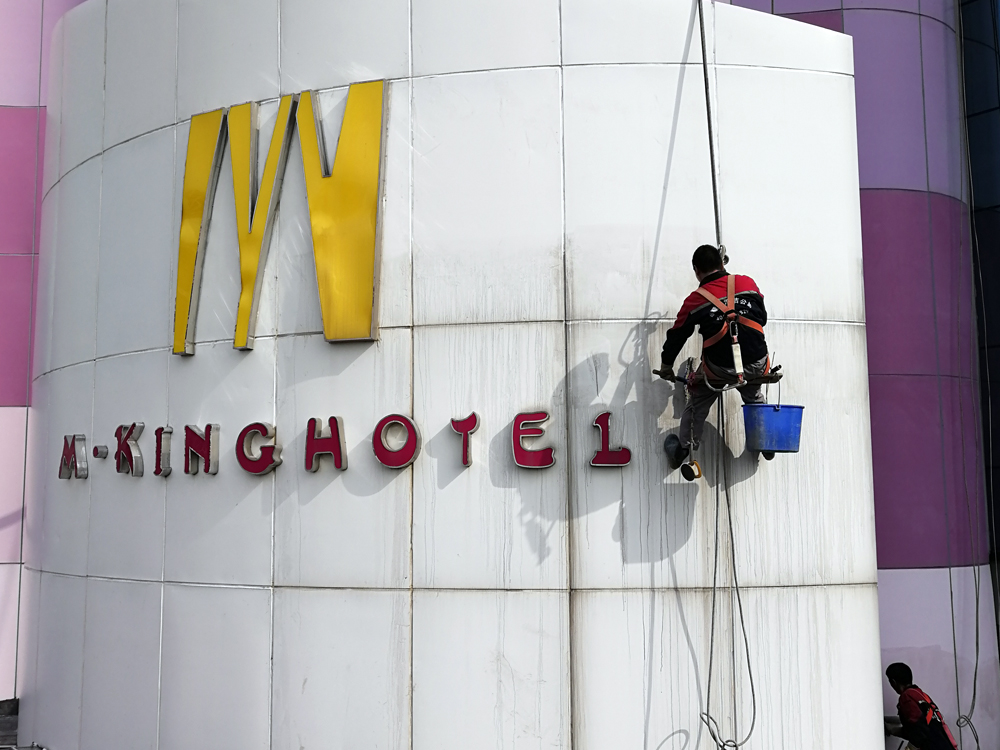 2、人員條件:外墻清洗人員必須有良好的身體和心理素質。年齡應在40歲以下。血壓、心臟、視力良好,不能有恐高癥。